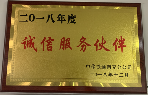我公司獲得中移鐵通南充分公司頒發(fā)的誠信服務伙伴認證