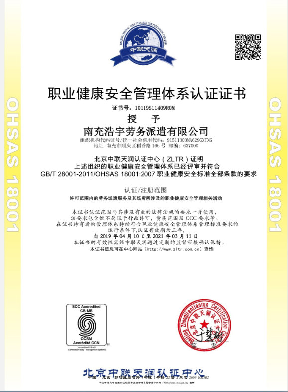 我公司獲得職業(yè)健康安全管理體系認證證書